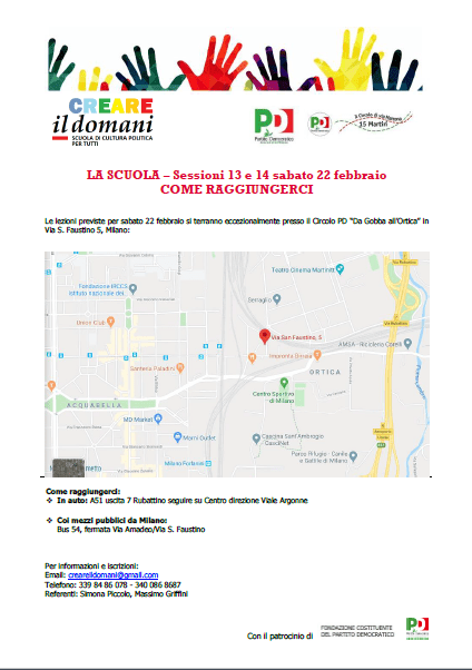 ATTENZIONE! La sessioni si terranno eccezionalmente in via S. Faustino 5, Milano presso Circolo PD “Da Gobba all’Ortica”
