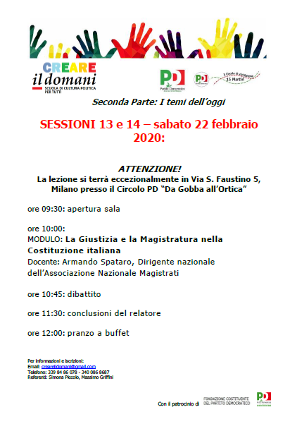 - Mattina – “La Giustizia e la Magistratura nella Costituzione italiana“, ne parleremo con Armando Spataro