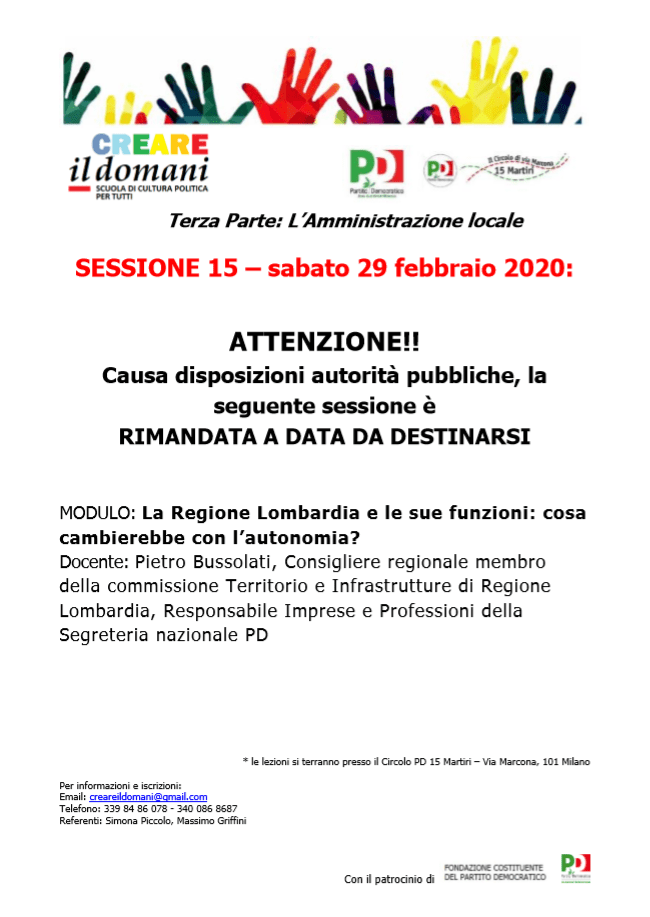 Date le recenti disposizioni delle autorità pubbliche, la sessione di “Creare il domani” prevista per oggi è RIMANDATA A DATA DA DESTINARSI