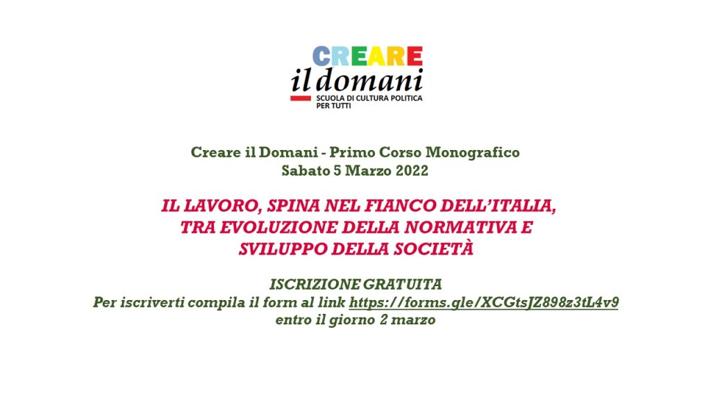 Sabato 5 marzo non prendete impegni, siete tutti invitati a partecipare al primo corso monografico di Creare il Domani, scuola di cultura politica per tutti!
