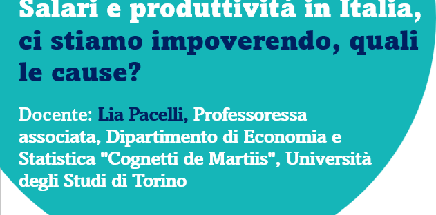 La seconda lezione di giovedì ha come tema “Salari e produttività in Italia, ci stiamo impoverendo, quali le cause?”, ne discuteremo con Lia Pacelli