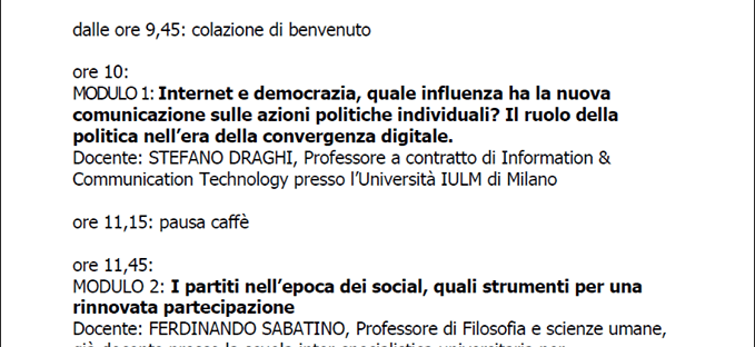 Edizione 1 / Sessione 4 (Draghi – Internet e democrazia / Sabatino – Partiti e social) – Documenti di approfondimento