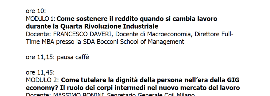 Carissimi, Confermiamo l'appuntamento di sabato 01 dicembre presso il Centro Civico Pasolini, in largo Nenni, 2 Opera. La lezione di sabato ha come tema la quarta rivoluzione industriale: come sostenere i salari e rappresentare i diritti dei lavoratori nel nuovo mercato del lavoro, ne discuteremo con Francesco Daveri e Massimo Bonini (al link biografie e… Continua a leggere Edizione 1 / Sessione 5 (Daveri – Supporto al reddito / Bonini – Diritti lavoratori) – Sabato 01 Dicembre